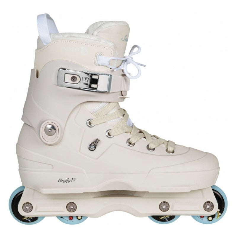 „Für meinen vierten Pro Aeon von USD wollte ich eine vereinfachte klassische Aeon-Ästhetik schaffen, aber mit den neuesten High-Spec-Funktionen. Beginnend mit dem Entfernen der Shell-Skin und der Auswahl einer zeitlosen USD-Cremefarbe als Hommage an Skates wie Fredrick, Arlo und All-Star-Team Throne der Vergangenheit. In Zusammenarbeit mit dem MyFit-Designteam habe ich einen neuen Pro-Innenschuh in der Silhouette der neuesten MyFit-Prime-Innenschuhe entworfen. Diese habe ich für maximale Unterstützung und Reaktionsfähigkeit ausgewählt, aber mit einer zusätzlichen Recall-Innensohle für den sofortigen Einsatz -Komfort aus der Box. Wie üblich habe ich die 45-Grad-Straps entfernt und extra hochwertige gewachste Schnürsenkel hinzugefügt. Abgerundet habe ich den Skate mit meinen Pro-Rollen „Le Planet Sauvage“ aus der Blockbuster-Reihe von Undercover und Wicked ABEC 9-Lagern.“ - Sam Crofts